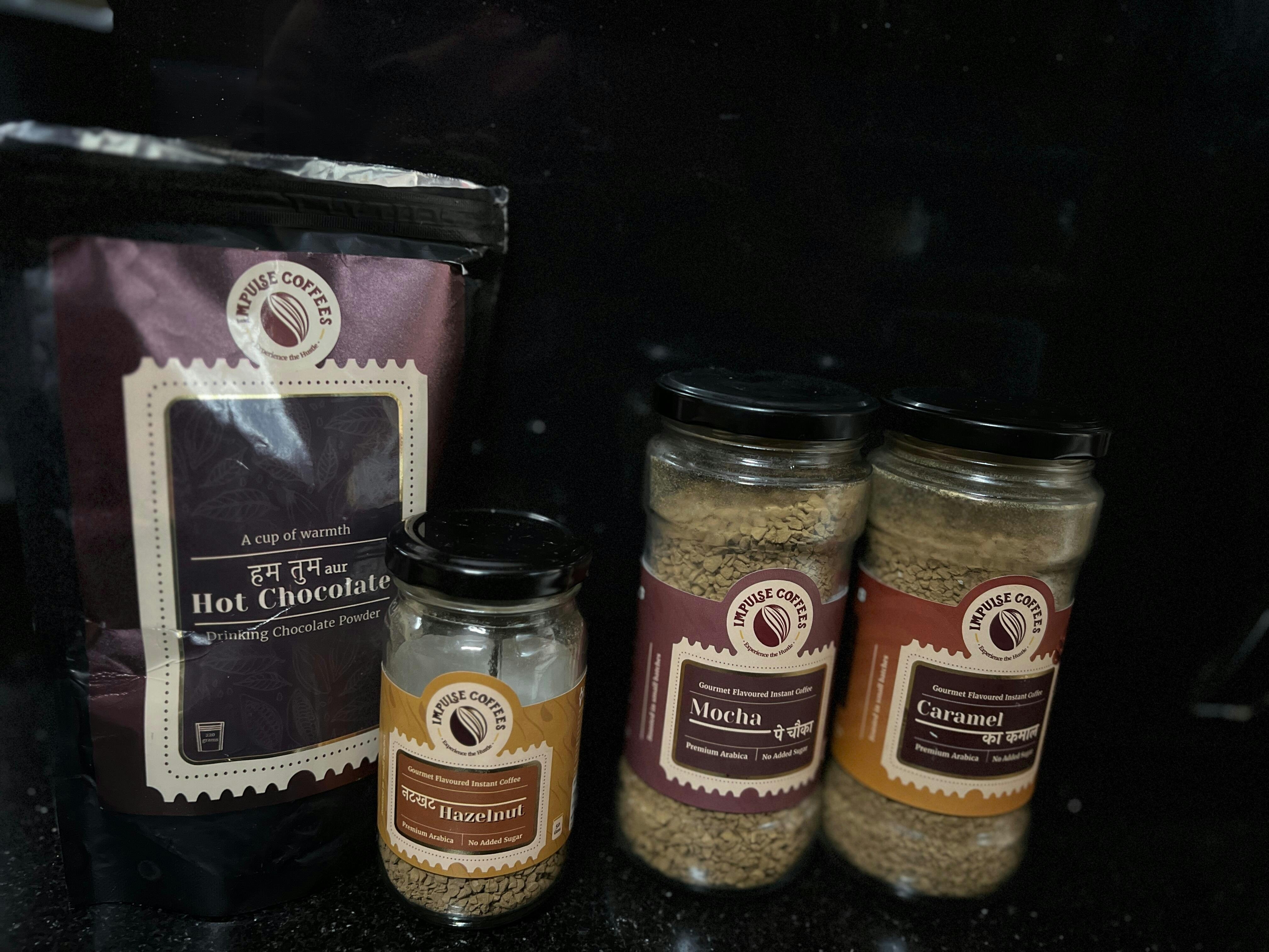 Caramel Ka Kamal brings that silky-sweet, buttery note, while Mocha Pe Chauka packs a chocolatey punch with just the right amount of coffee kick. Together, they’re your ticket to café-style indulgence at home – no barista required.